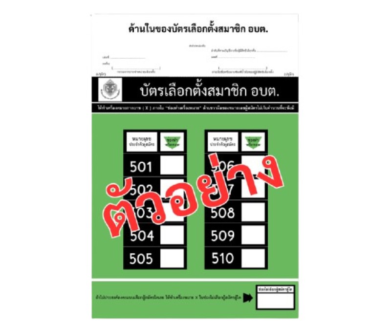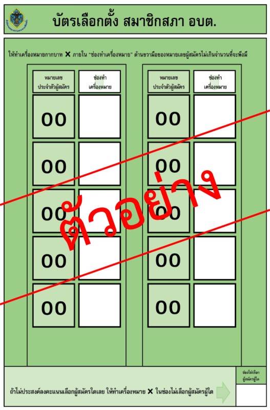 ตัวอย่างบัตรเลือกตั้งสมาชิกสภาองค์การบริหารส่วนตำบล
