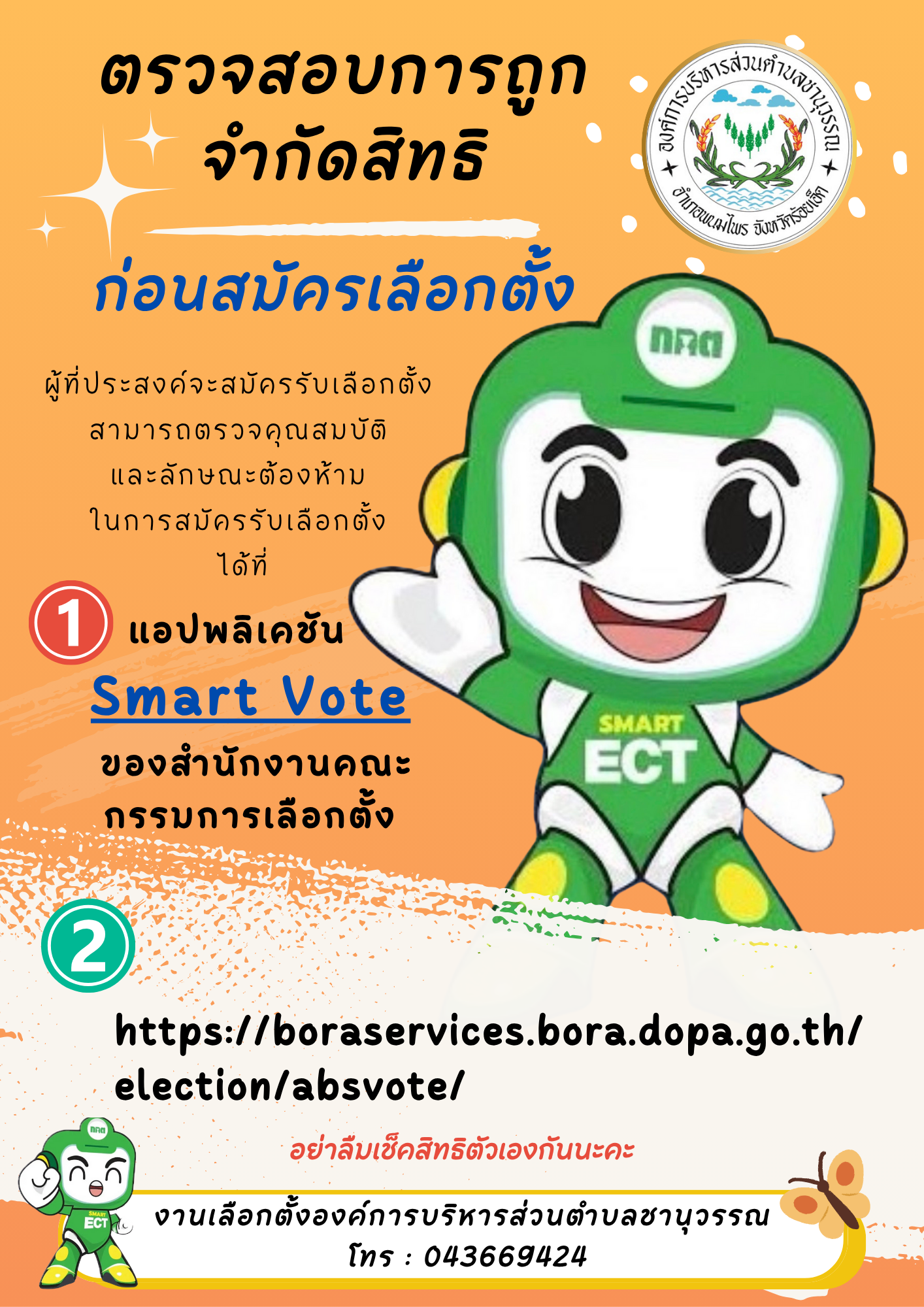 สามารถตรวจเช็คได้ที่ https://boraservices.bora.dopa.go.th/election/absvote/ หรือดาวโหลดแอปพลิเคชัน Smart Vote ของสำนักงานคณะกรรมการเลือกตั้ง สามารถเช็กสิทธิได้แล้วตั้งแต่วันนี้เป็นต้นไป